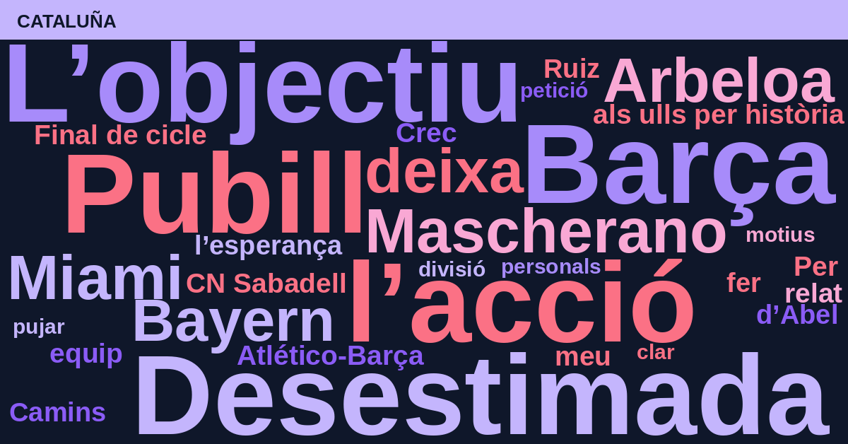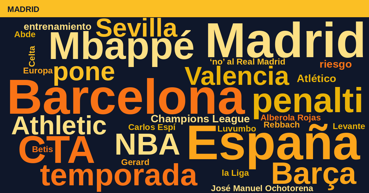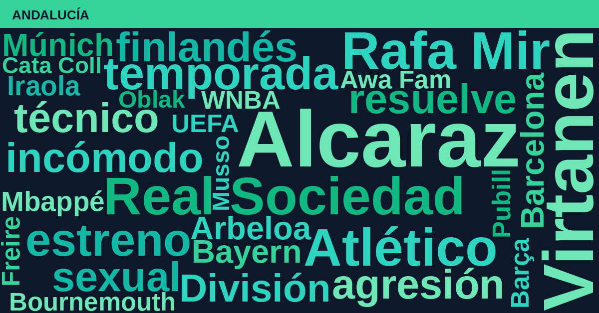 Barcelona20%Alcaraz12%WNBA12%Awa Fam11%Barça10%Atlético9%Bayern7%