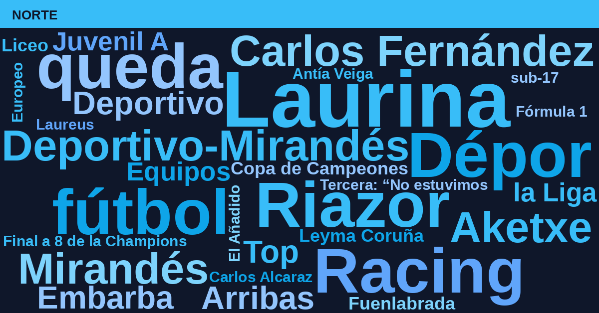 Titulares del día filtrados por fecha de publicación. Frecuencias TF×DF por región con SpaCy (es_core_news_sm). Entidades nombradas con peso ×2.