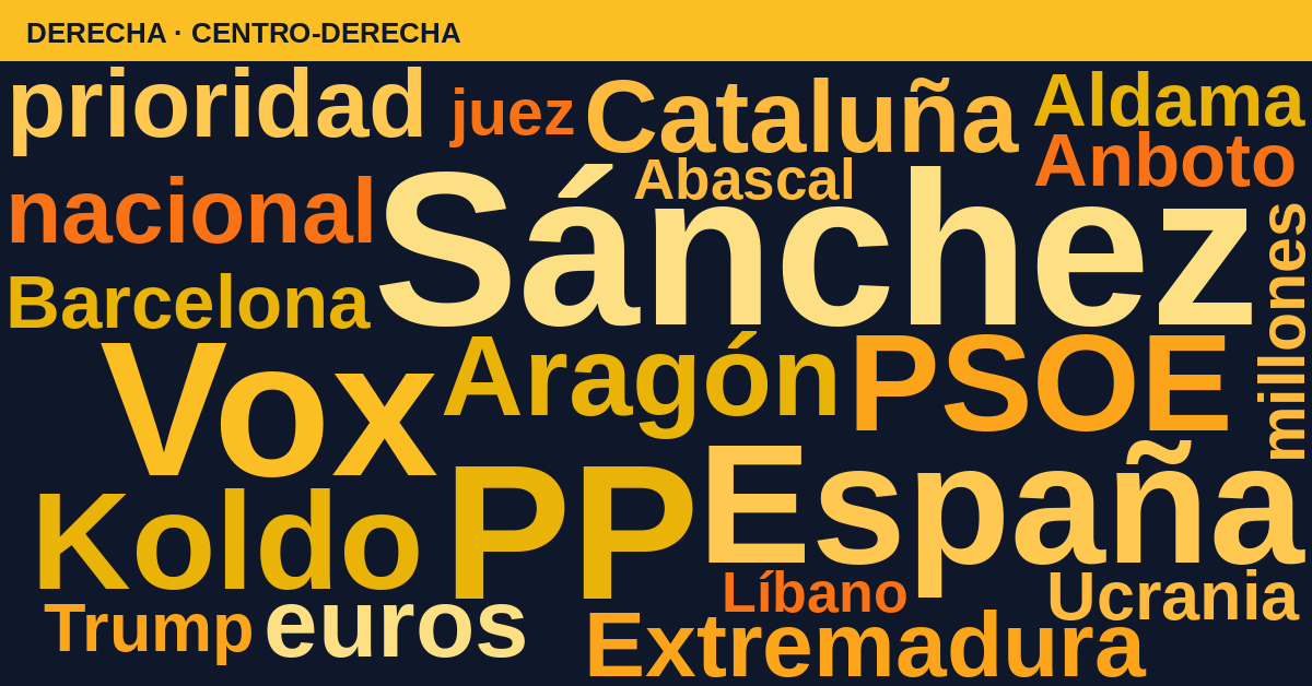 El bloque de la derecha mantiene su foco crítico en la gestión de Sánchez, vinculando la actualidad con el caso Koldo y la situación en Cataluña. El pacto en Aragón se presenta como una "prioridad nacional" para garantizar la estabilidad, contraponiéndolo a los acuerdos del Ejecutivo central con fuerzas independentistas.