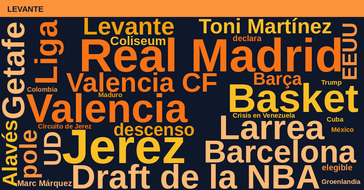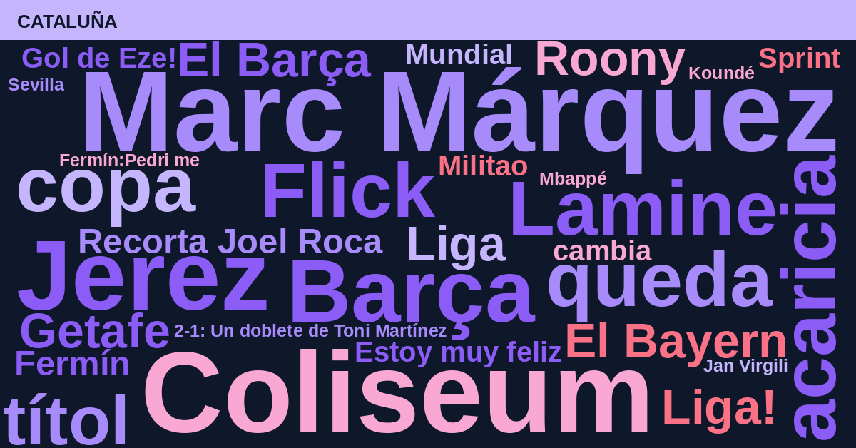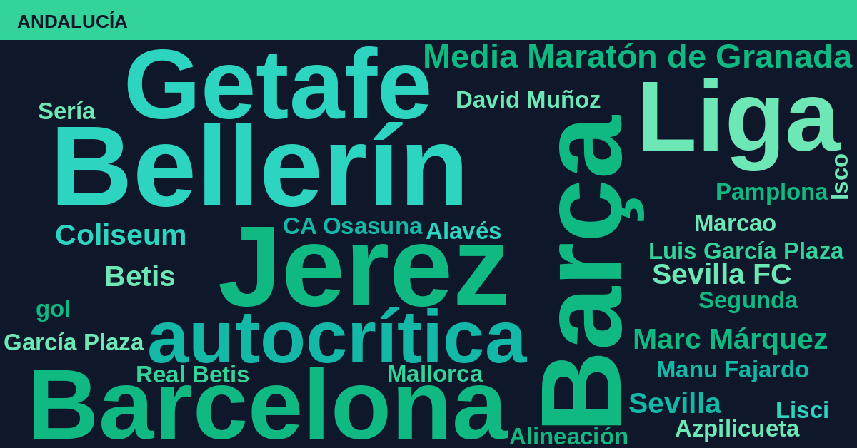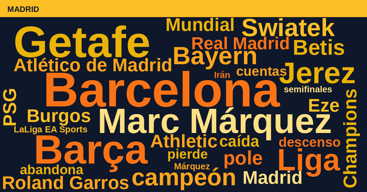 Barça16%Jerez16%Marc Márquez14%Getafe13%Liga8%Barcelona8%Real Madrid7%Mundial7%Coliseum6%Militao5%