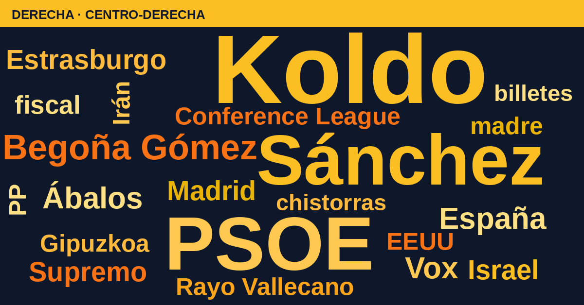 En el bloque de derecha, la atención es casi quirúrgica sobre Koldo y sus revelaciones sobre los billetes de 500 euros ("chistorras"). El encuadre se centra en la presión sobre Sánchez y el entorno de Begoña Gómez, apoyado por las decisiones de tribunales como el Supremo o instancias en Estrasburgo.